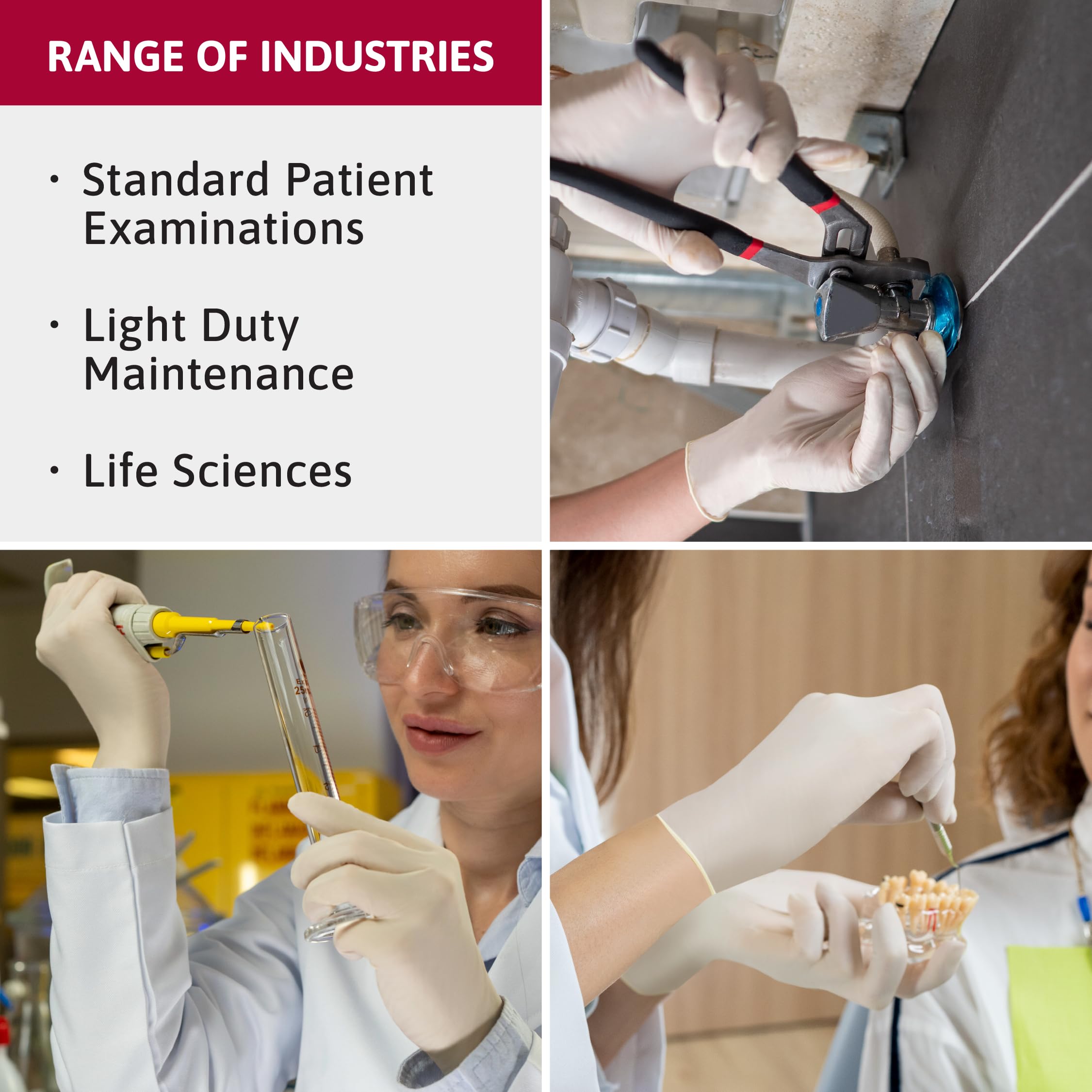 - Versatile single use gloves ideal for household, residential, commercial, or industrial use, including food processing, laboratory, janitorial, auto, mechanics