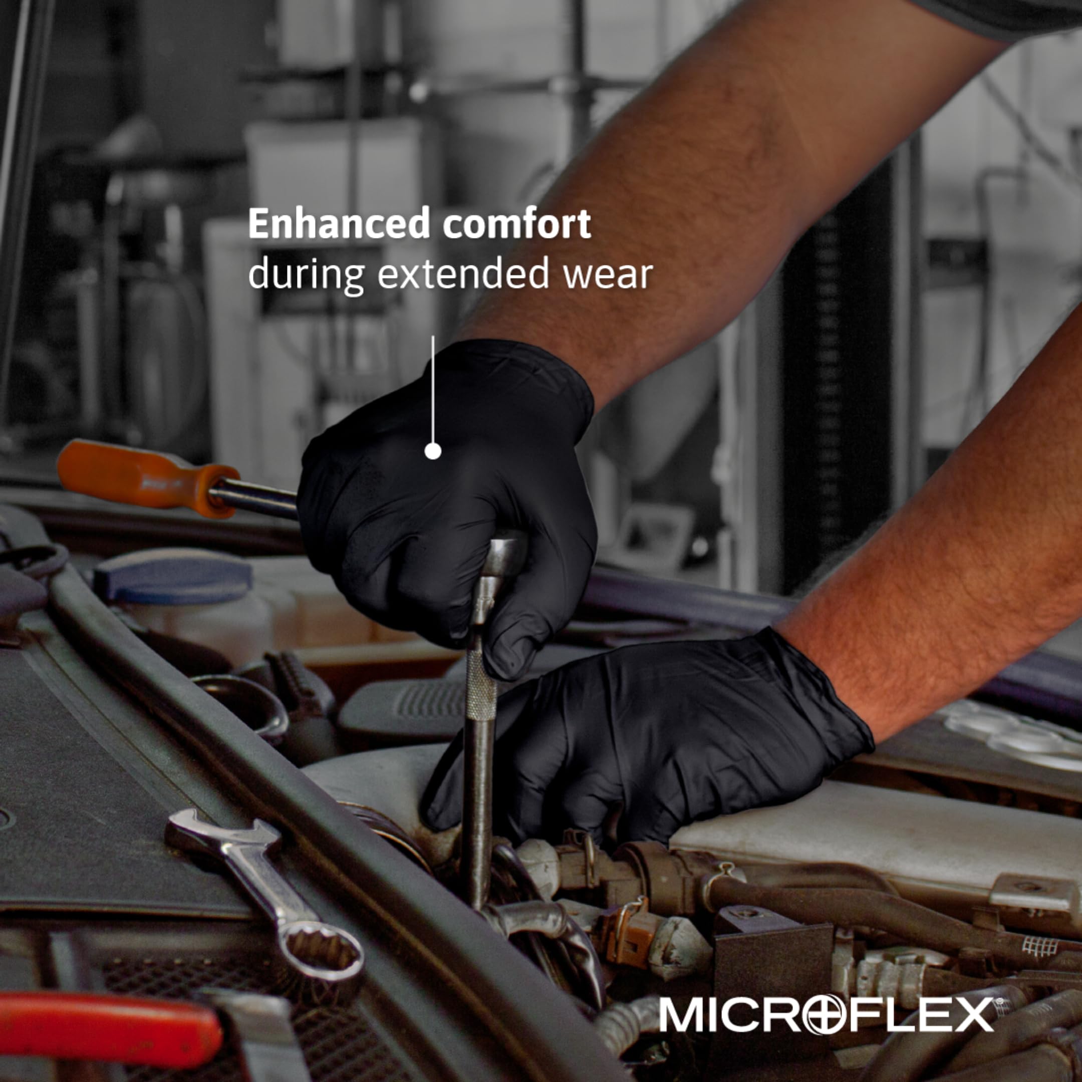 Ansell MICROFLEX Midknight Touch 93-732 Disposable Nitrile Exam Gloves for Auto, Tattoo, Dentistry, Catering, 4.3 mil - Medium, Black (Box of 100)